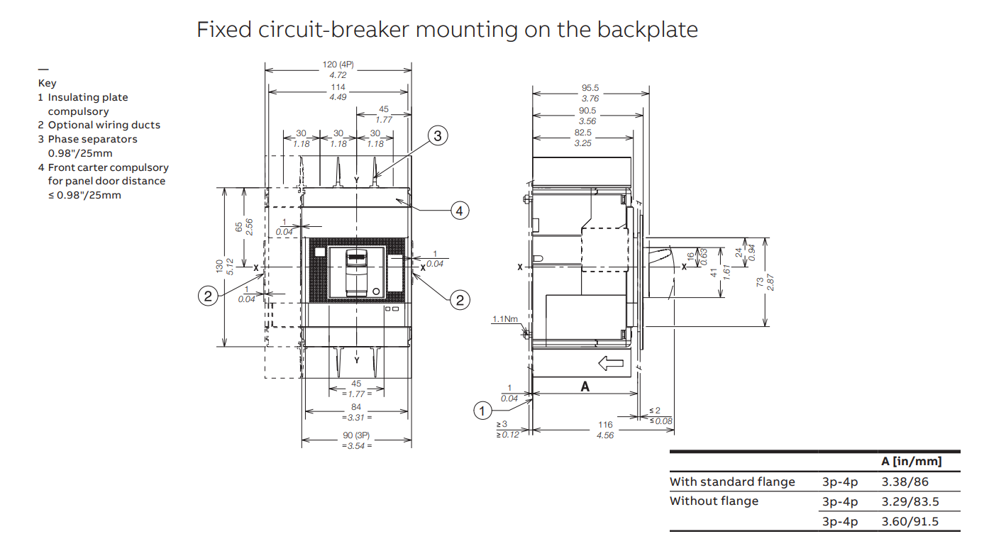Kích thước MCCB Tmax XT ABB XT2N 36KA 16A 3P 1SDA067010R1: